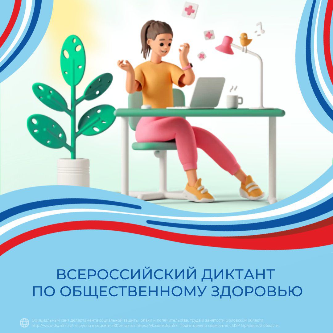 С 5 по 15 апреля каждый желающий сможет принять участие во Всероссийском диктанте по общественному здоровью и диспансеризации на платформе диктантздоровья.рф. Тест направлен на проверку знаний населения о вопросах диспансеризации и основных аспектах здорового образа жизни. В этом году на сайте появился раздел для школьников «Параграф о здоровье», где учащиеся смогут получить знания о здоровом образе жизни, а также проверить свои знания.